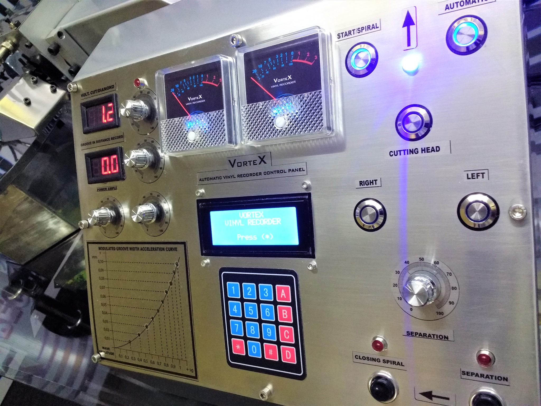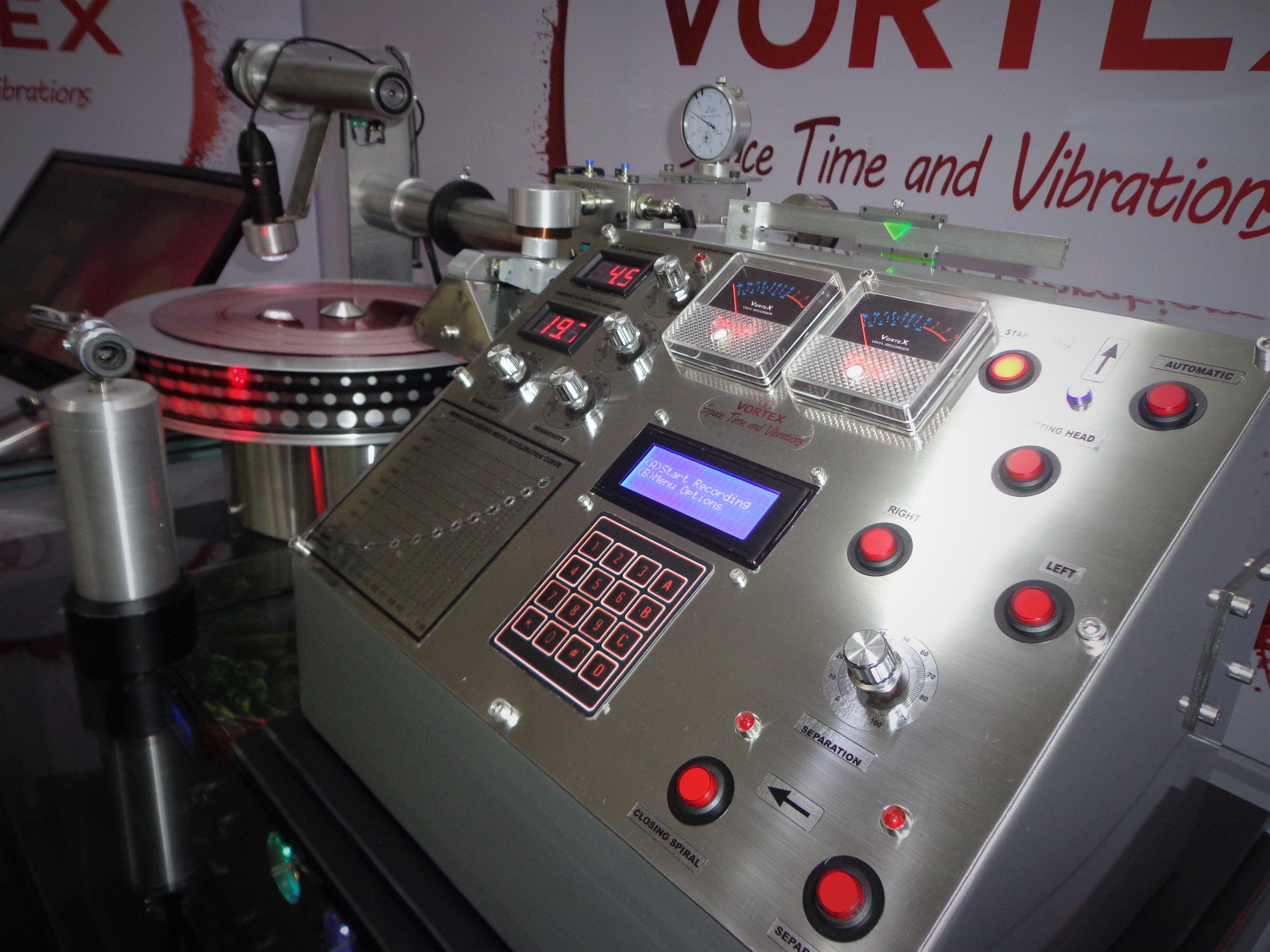 This isn’t just pressing a REC° button. When an unmastered song is sent directly to the cutting head of a vinyl record player, the resulting sine wave written on the surface will be completely distorted, and the frequency levels will be completely unbalanced. That’s where the famous “Master Cutting Engineer”—the “Mastering Engineer”—comes into play. Who is in charge of mastering the songs so that the sound wave is drawn microscopically and stably on the surface of the Master Lacquers? (Clearly, a job not just anyone can do.) So what does the machine do? It draws the waveform of any audio signal injected into it physically and microscopically without limitations, as if it were a pencil drawing on a sheet of paper. This would be a superficial example, but the machine does it microscopically within a spiral, and that is the most complex work that VORTEX machines perform. However, on VORTEX machines, the machine’s operating controls are simple and convenient, ensuring a smooth cut within the groove. VORTEX even features automatic mechanical operating systems to assist the operator. Perhaps the most difficult aspect for some is the “understanding of the working technique,” which many people fail to grasp.